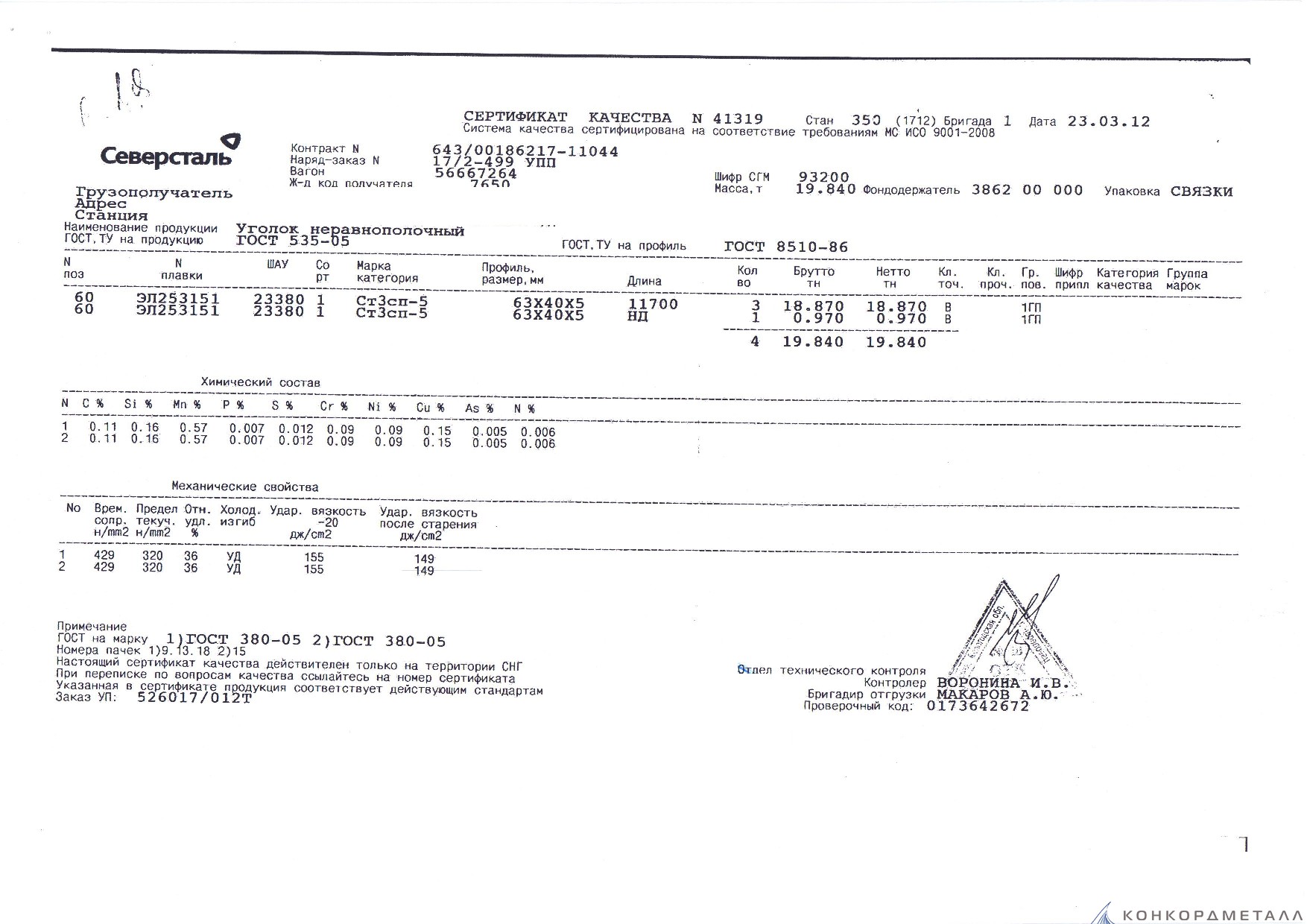 С каждой товарной позицией мы предоставляем все сертификаты и паспорта качества, а также товарно-транспортную накладную.